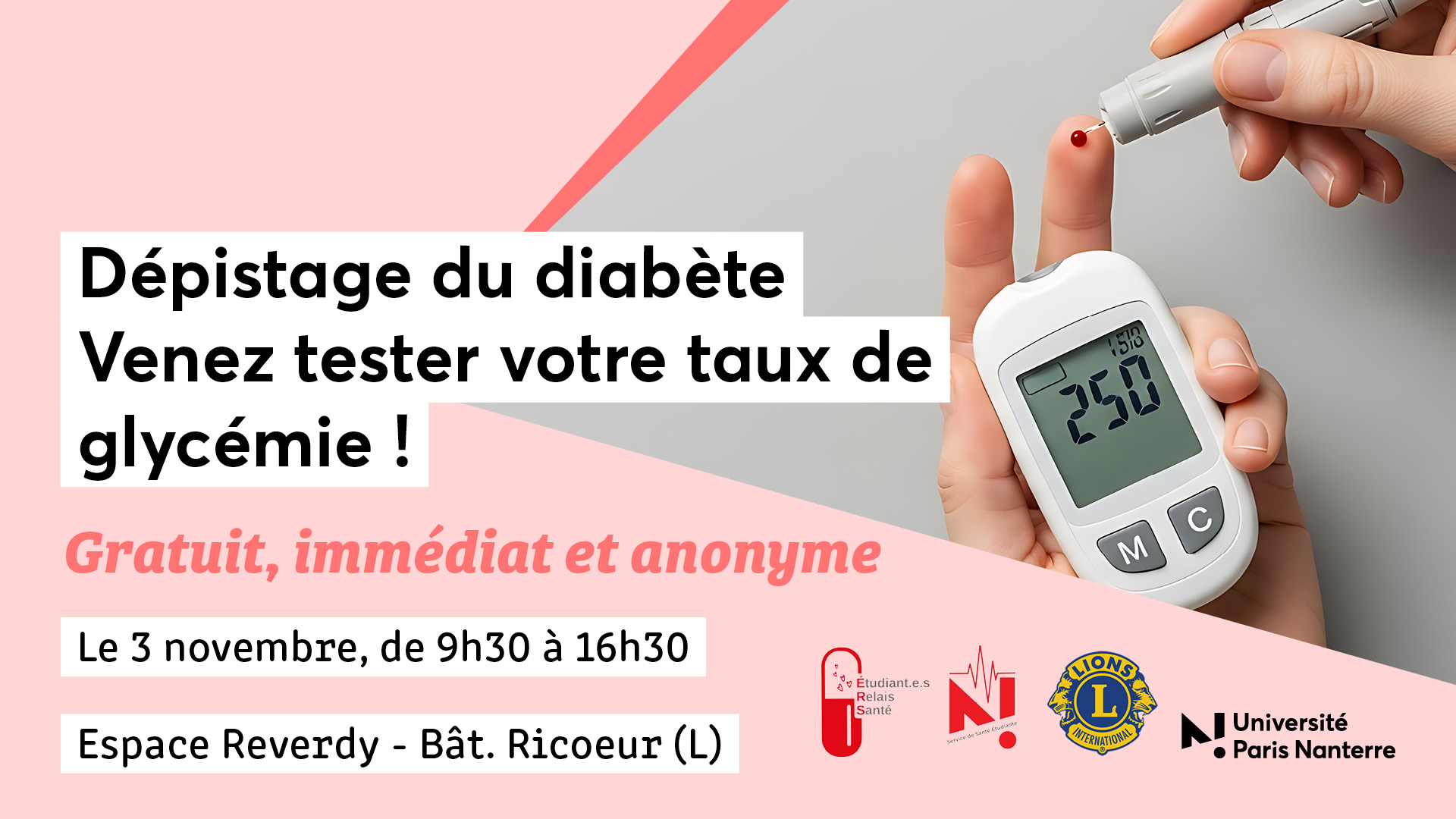 [SANTÉ] - Dépistage du diabète - Venez tester votre taux de glycémie !