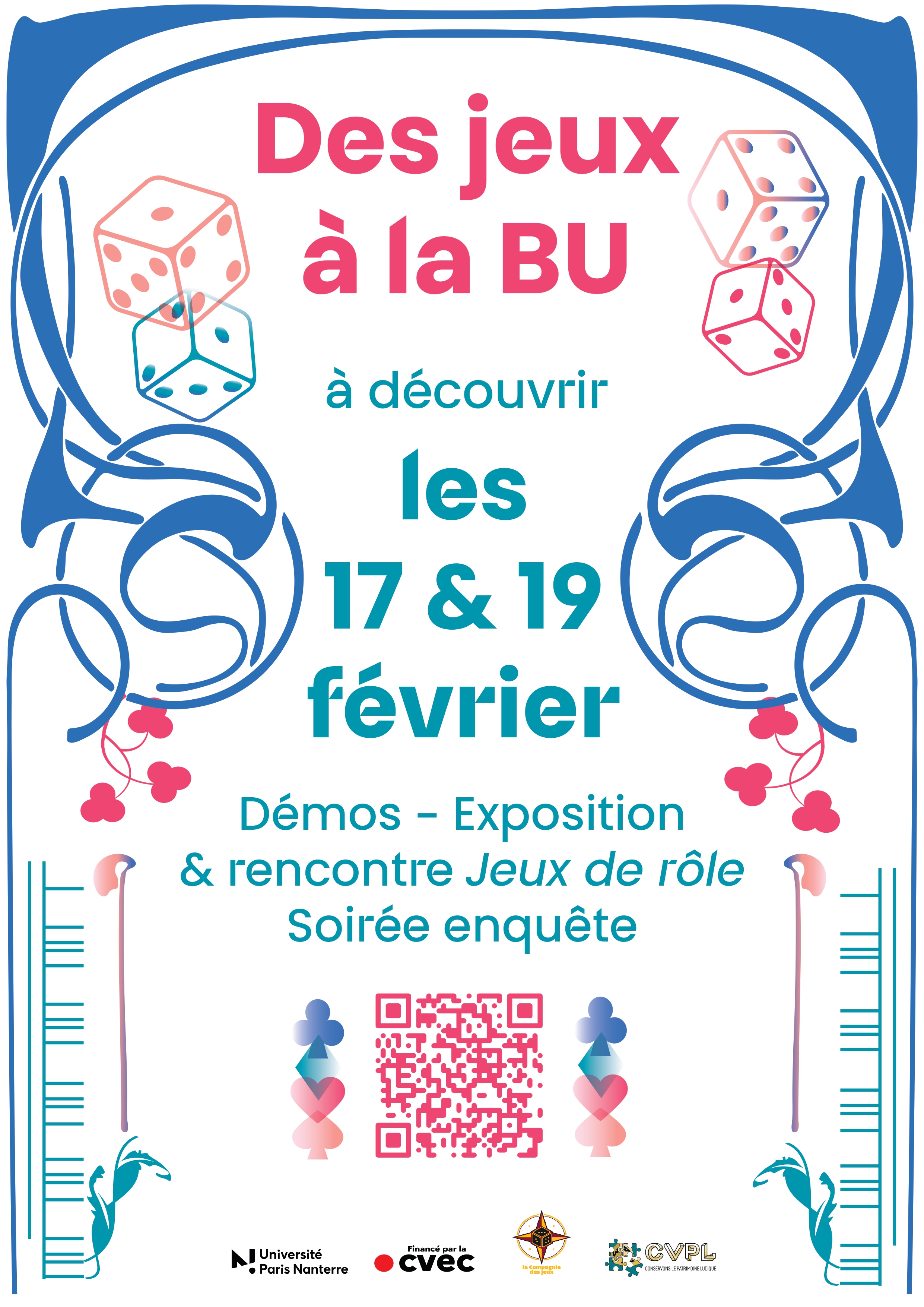 - Mardi 17 février, à partir de 11h30, BU - Accueil Est (espace Vie étudiante) | Découverte des jeux de la grande BU