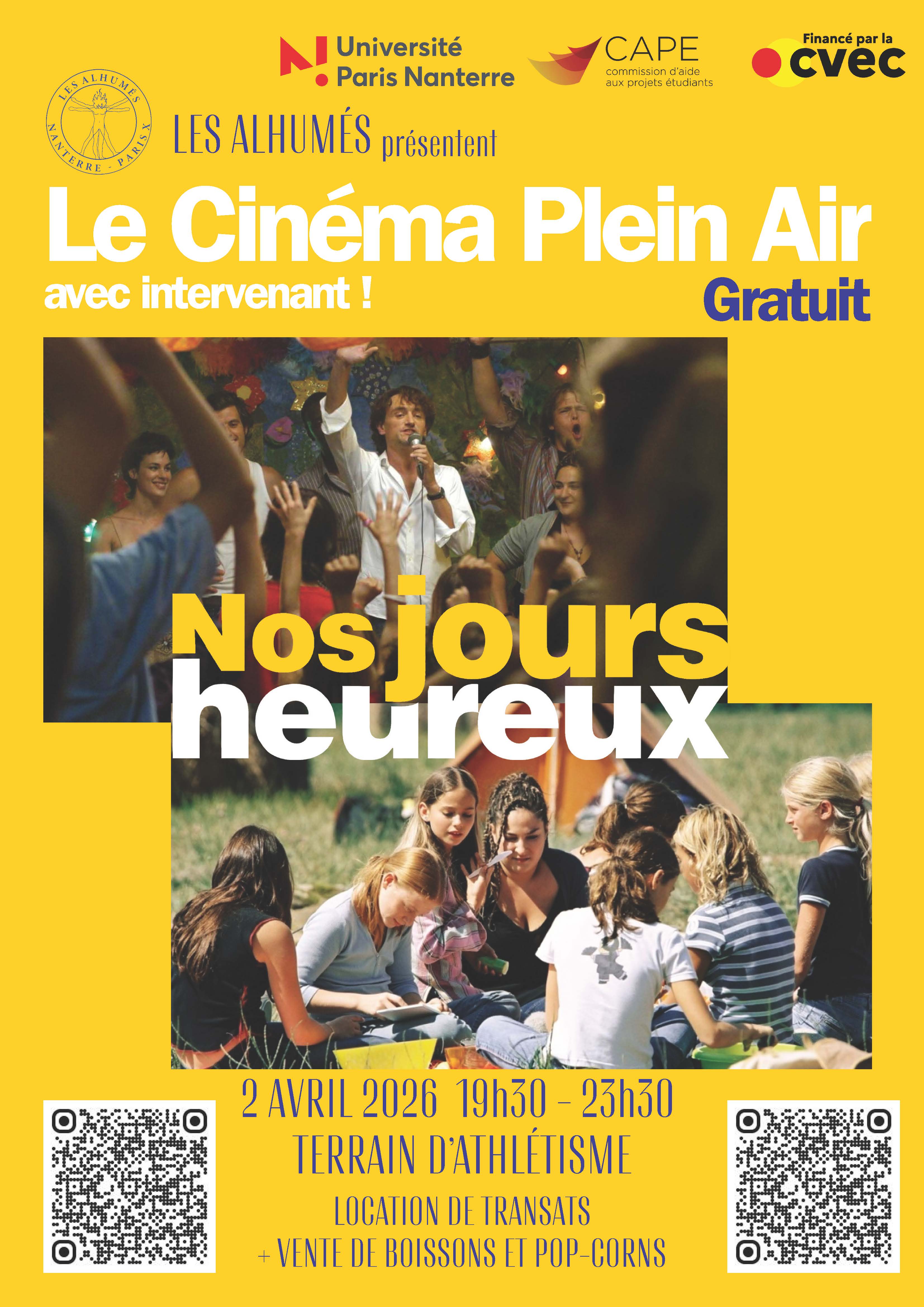 Une soirée cinéma en plein air, gratuite et ouverte à tous, avec la projection du film Nos Jours Heureux ! suivi d’un échange en présence d'un intervenant surprise !
