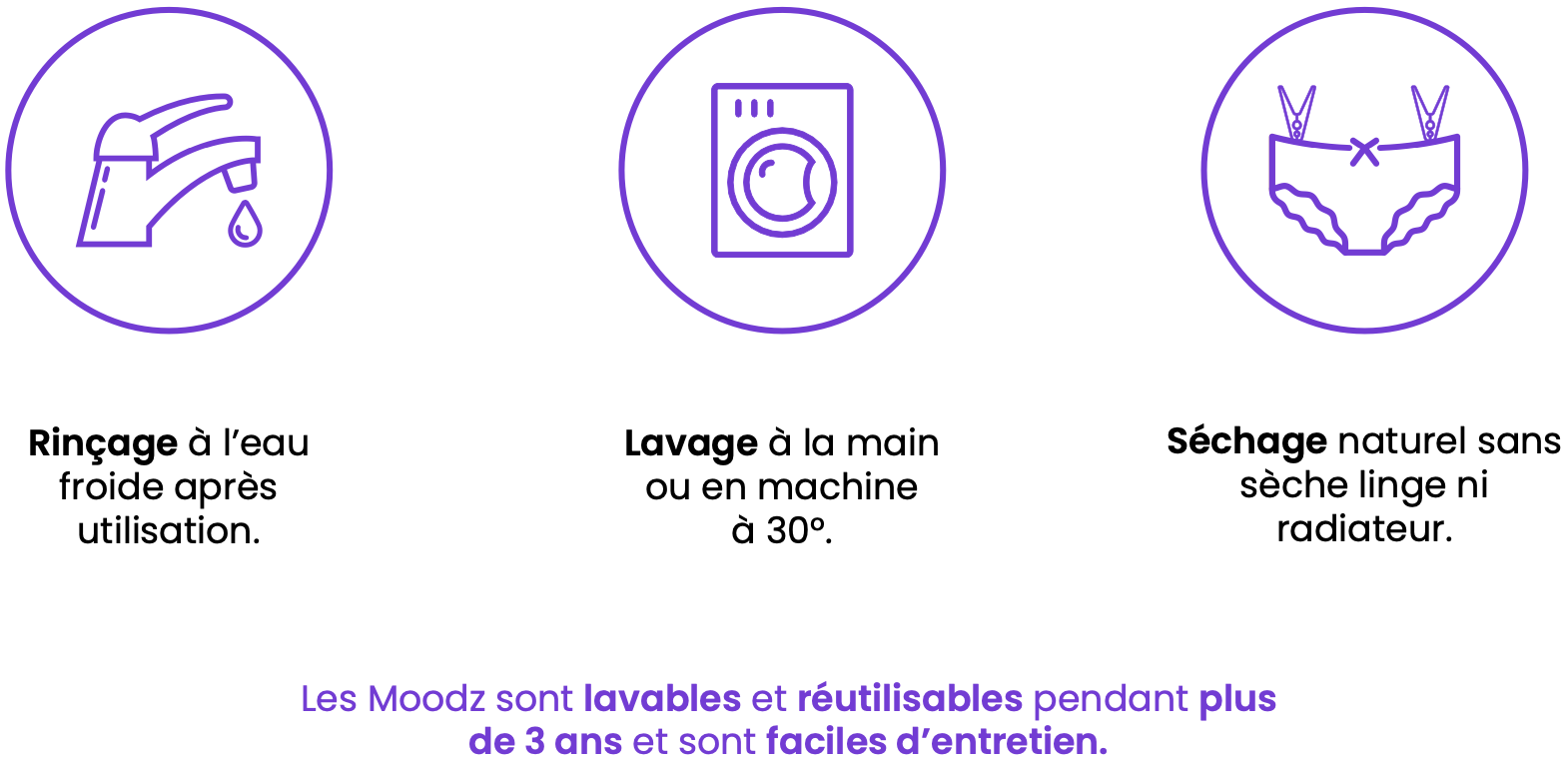 Une fois la culotte utilisée, rincez-la à l'eau froide jusqu'à ce que l'eau soit claire.